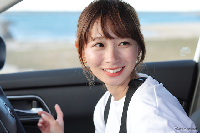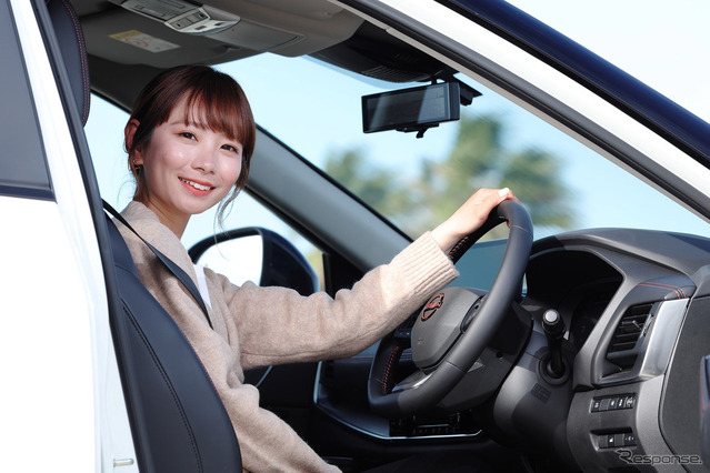 外見は大きく変わったようには見えなかったけど、室内に入った瞬間、あ、全然違うって思いました。スタートボタンの位置も逆だし、シフトレバーの操作方法も違って新鮮。それと、外観の赤いワンポイント。かわいい~と思ったら、溶岩をイメージした“ラバレッド”って言うんですね。ロゴもぽこっとした岩の形でかわいいし、シートや内装のステッチまで全部ラバレッドで統一していて、細かいところまでこだわっててキュンとしました。