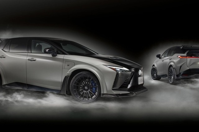 最新のBEVシステムを全面刷新した「RZ550e F SPORT」をベースに、空力パーツによるダウンフォース向上とモーター出力の増強により高い操縦安定性と走行性能を追求した。モーターの最高出力は313kW(約426ps)に達し、0-100km/h加速は4.4秒を実現。大型20インチブレーキローターを採用し制動力を向上させている。