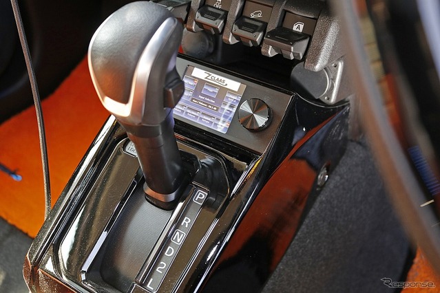 コクピットまわりにはいくつものカスタム処理が施されているのも見どころ。そのひとつがブラックスのダイレクターをセンターコンソールのシフトゲート前に埋め込み取り付けした処理だ。コンソールのラインを生かしつつ、ダイレクターをピタリと納めるスペースを作っているのも見事な造形。操作性と視認性、デザイン性のすべてに妥協のないクオリティの高い取り付けとなった。