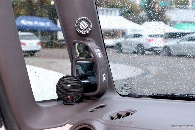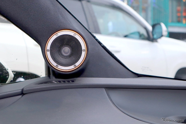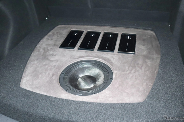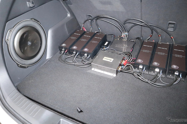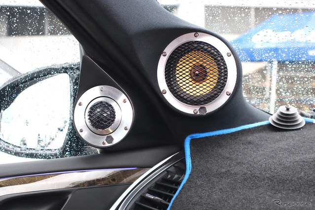 パワーアンプはクワトロリゴ・プレシジョンTWO(A級)4基使いにより各ユニットを精緻にドライブ。デジタルシグナルプロッサーはヘリックス・DSP-ULTRAを使用。帯域バランス、アライメント、位相調整とインストーラーの音調整により、端正なサウンドを前方フロントウインドウに放つ。