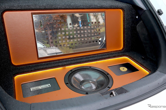 フロント4ウェイ+センター+サブウーファーという構成で、実質的な音響チューニングも施し車内の反響やロケーションの改善に努めている。再生プレーヤーはアウネ・GTS3ほかDAPとナビ。DSPはリゾルト・M-DSPを搭載。長年の研究による音創りの成果がここにある。艶やかな音色、前方定位、臨場感も端正に再現する。