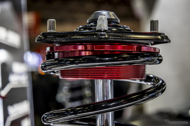 ダンパーは純正を使用することでサスペンションを外したときに使わなければならないキャンセラーなどが不要。もちろん純正の減衰力調整機能もそのまま使える。キットにはフロント/リア用の専用スプリングに加え 車高調整用アジャスター、専用ショートバンプラバー、ダストブーツが付属。フロントサスはアッパーマウント側にアジャスターを配置して、そこに専用スプリングとバンプラバーを入れて取り付けることで車高の調整ができる。リアは専用バンプラバーを交換し スプリングを専用品にしてアジャスターを取り付けることでこちらも車高を変えることができる。