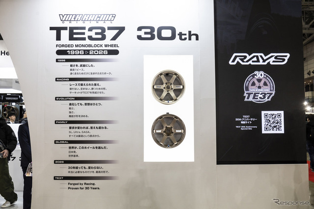 TE37の30thアニバーサリーイヤーは始まったばかりで2026年は1年を通じてさまざまな取り組みが予定されている。ホイールでは今回の30thアニバーサリーモデルに加えて過去の人気カラーを取り入れた限定モデルの登場も予定。30th記念グッズの展開も加速していく見込みだ。イベントでもTE37の30周年を前面に押し出した展開が予定されており今後の動きから目が離せない。