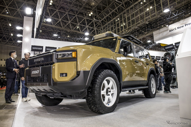 ブースにはシビック タイプRやランクル250に30thアニバーサリーモデルを装着した実例も展示された。サイズラインアップが豊富なのもTE37の魅力だが「TE37 SAGA S-plus 30thアニバーサリー」「TE37 SONIC 30thアニバーサリー」「TE37 ULTRA LARGE P.C.D. 30thアニバーサリー」の3モデルで15インチから大径サイズさらにラージP.C.D.までをカバー。軽自動車からスポーツモデル大型4WDまで人気車種の多くにフィッティングできるのも特徴だ。一部の限定車種向けだけに絞らない点もTE37を履く車種の多様さを物語っている。