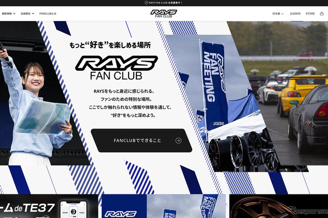 最新情報をいち早く入手したりホイール好きのコミュニティに参加するならRAYS FAN CLUBへの登録が便利だ(スマホで無料登録可能)。登録すればイベント告知などを早く知ることができ製品購入やイベント参加でポイントをためると特典が用意されているのも魅力。ホイール好きでレイズ好きならチェックしておきたいファンクラブだ。