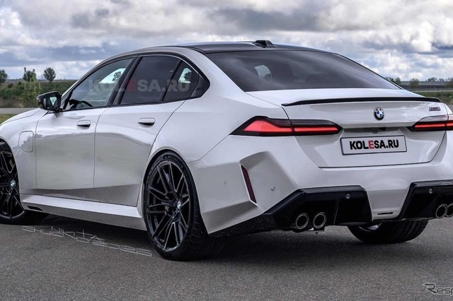 最も顕著な変更点はフロントエンドだ。斜めのデイタイムランニングライトを備えた、特徴的なヘッドライトを装備する。グリルは、ブランドの最新スタイル「ノイエクラッセ」を踏襲すると思われたが、標準型5シリーズも含む最近のプロトタイプには、クラシックな「キドニーグリル」を彷彿とさせる要素が追加されており、レンダリングにも考慮された。