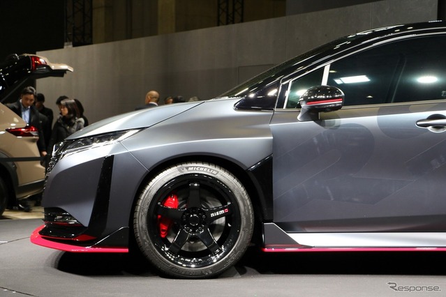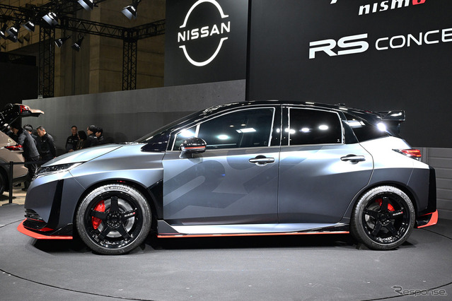 日産自動車と日産モータースポーツ&カスタマイズは「東京オートサロン2026」で、『AURA NISMO RS Concept』を世界初公開した。コンパクトスポーツ『AURA NISMO(オーラニスモ)』のボディに『X-TRAIL NISMO(エクストレイルニスモ)』のパワーユニットを搭載した高性能スポーツで、レースの現場での知見をより早く市販車につなげるために位置付けられたクルマだという。
