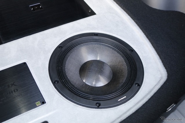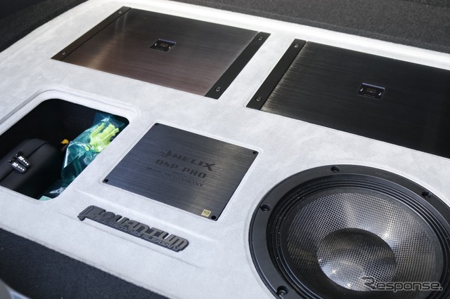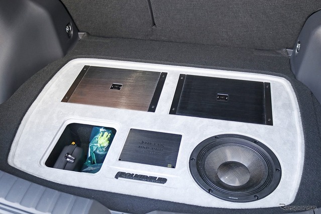 一方、ラゲッジの右後方にフラットインストールされているのはカロッツェリアのサブウーファーであるTS-W1000RS。フロント3ウェイと統一してRSスピーカーを導入し、サウンドの統一感を引き出す。