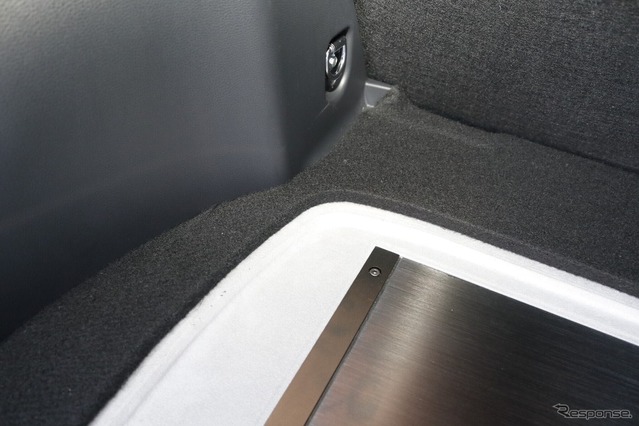 フラットなラゲッジインストールの美しい仕上がりは、写真を見るだけでもわかる。一段落とし込んだパネル部分はホワイトの人工スエードを使って上質な仕上がり。周辺は純正インテリアとぴったりフィットする精度の高さだ。その完成度の高さは、純正ラゲッジを見たことがない人には、どこからが加工なのか判断しにくいほどである。
