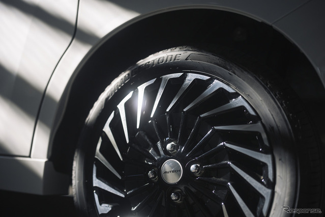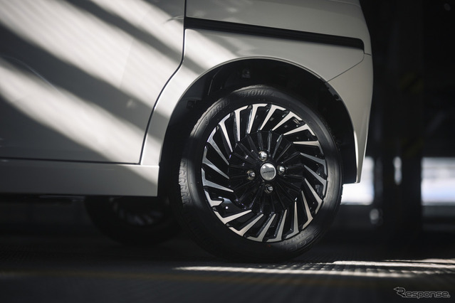 15インチの専用アルミホイールも、コンセプトを物語るようなデザインを採用。斜めに伸びたマルチスポークは、スポーティな疾走感とプレミアムな上質感を兼ね備え、切削加工を施して際立たせたブラック塗装とのコントラストがクールでスタイリッシュだ。