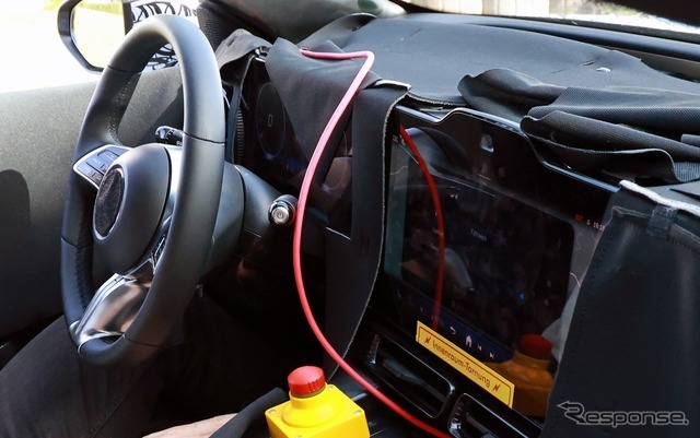 キャビン内のスパイショットからは、ダッシュボード全体に広がる39.1インチのMBUXハイパースクリーンディスプレイが搭載されることが示唆されている。