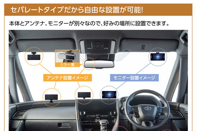 無線LANを標準搭載し、スマートフォンから自動でデータ更新が行える。GPSデータは毎月更新される最新情報を無料でダウンロード可能だ。また別売りオプションとして、ODB2アダプターやカード型リモコンなども用意されている。同社製品は日本製で自社工場生産、3年保証が付帯する。