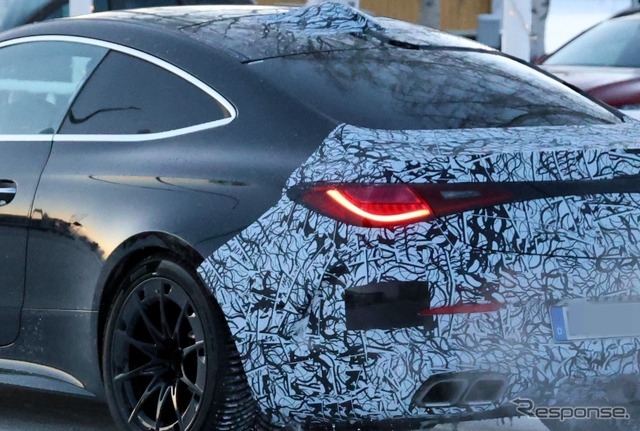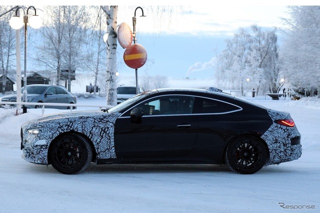 スクープ班のカメラが、メルセデスベンツ『CLE』のフェイスリフト版が雪道テスト走行中の姿を捉えた。前回の遭遇は標準モデルだったが、今回は、より高出力なパワーと、アグレッシブなスタイリングを持つメルセデスAMG 「CLE63」と思われる。