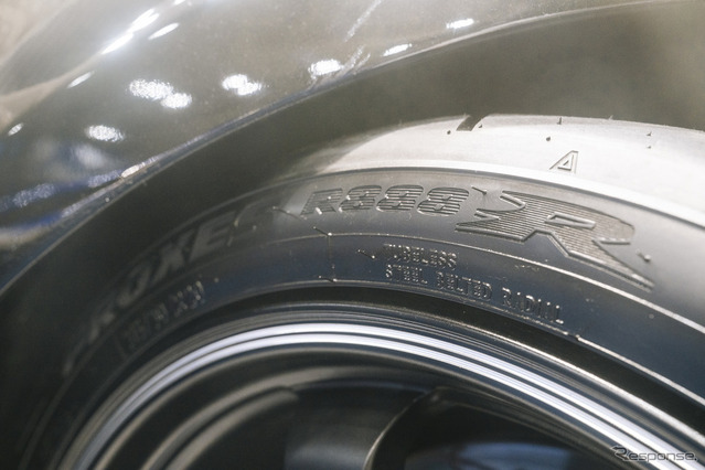 新たにGT-R専用サイズ(315/30R20/2025年11月発売)のラインアップを拡充した「プロクセス R888RD」を履きこなし、タイムアタックでの高いパフォーマンスを発揮する。R888RDは少しソフト傾向のコンパウンドを採用することで、スライド時のコントロール性能も高めているのも特徴となった。