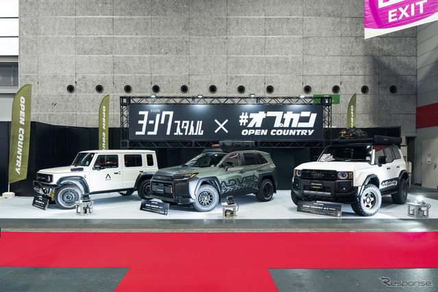 トーヨータイヤのオフロードブランドである「OPEN COUNTRY」(オープンカントリー)では新型RAV4を中心に、3台のデモカーが展示された。