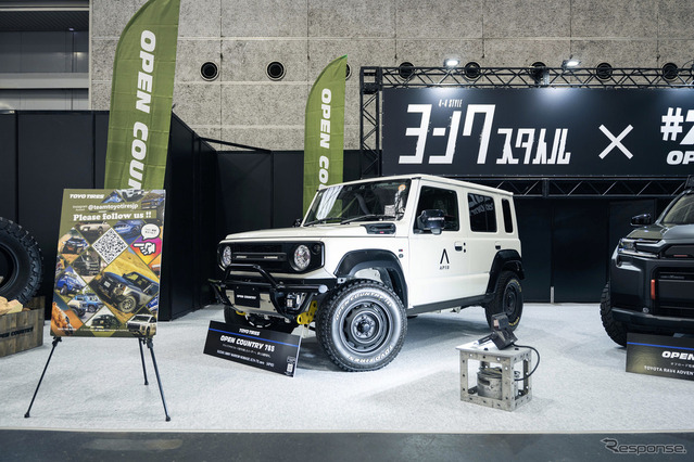 カスタムベースとしてもいま一番人気のあるSUVといえば、トヨタ『ランドクルーザー250』に違いないだろう。4×4エンジニアリングサービスが手掛けるこのデモカーは、ラギッド感満点のデザインでオープンカントリーの人気モデルとなっている「OPEN COUNTRY R/T TRAIL」(285/70R17)を履きこなす。
