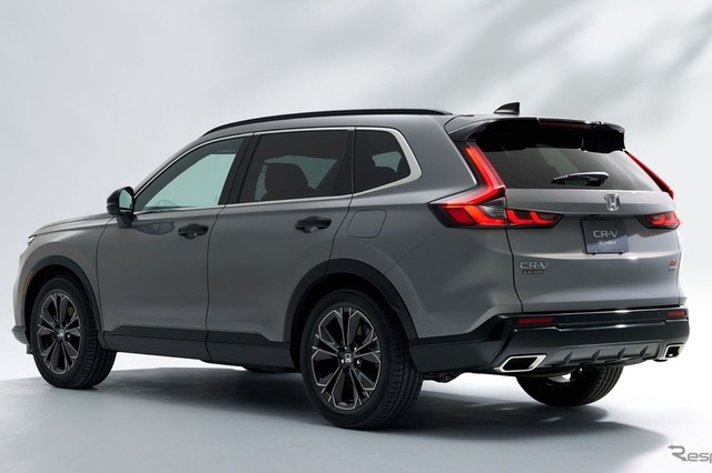 エクステリアは、歴代CR-Vの先進的でスポーティーなスタイルを受け継ぎ、よりSUVらしく力強いシルエットに進化した。フードやピラーなどの水平基調のシンプルな造形の中に、力強さと洗練・上質・大人らしさを凝縮して表現。また、CR-Vの象徴である縦型リアコンビネーションランプを踏襲し、リッドランプやナンバープレートを上方に配置することで、上質感とどっしりとした安定感を実現した。