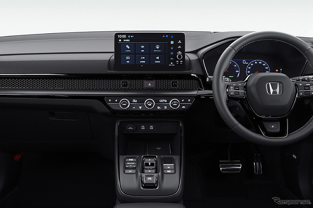 e:HEV RSは、外装下部をボディ同色とし、上質さと都会的なイメージを目指したスポーティーグレード。e:HEV RS BLACK EDITIONは、e:HEV RSをベースに内外装の加飾を黒で統一。力強さと洗練を引き立てる日本専用グレード。e:HEV RS BLACK EDITIONの主要装備は、ヘッドアップディスプレー、電動パノラミックサンルーフ、運転席&助手席シートベンチレーション、19インチ ノイズリデューシング アルミホイール(ベルリナブラック+ダーク切削クリア)など。