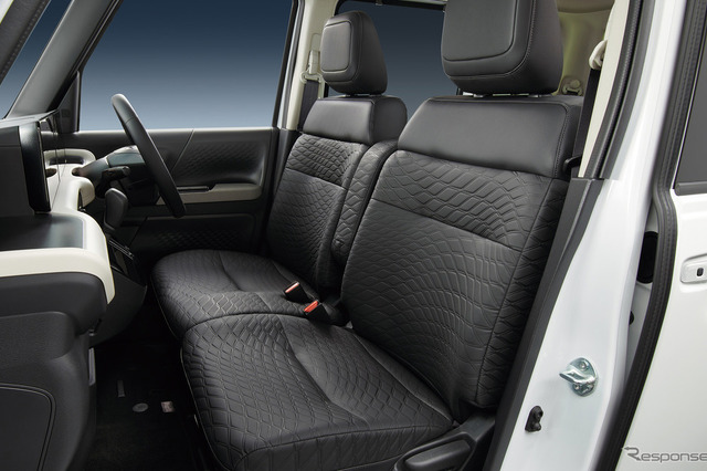 シート地には、スタイリッシュな意匠と上質な手触りに加え、防水機能も兼ね備えた専用の合皮素材を採用。お手入れも楽に行え、お子様とのお出掛けやアクティブな使用シーンでも水濡れや汚れを気にせず使用できる。