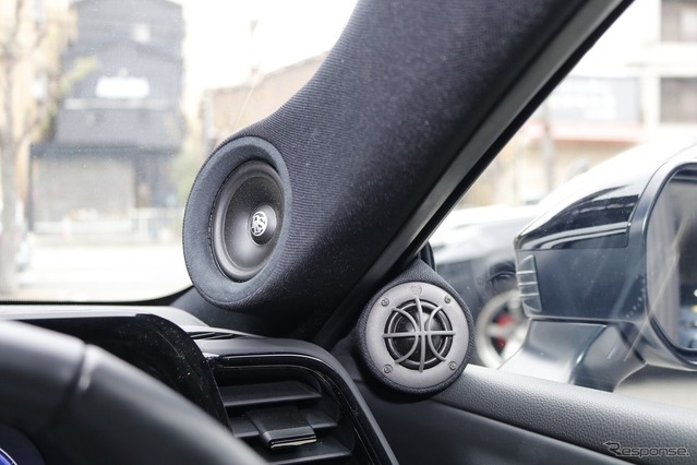 一方、フロント4ウェイ化にあたっては、スカンジナビアの3ウェイに加え、ダッシュ上の純正スピーカー位置へDLSのミッドレンジを取り付けた。こちらはミッドハイを担当し、Aピラーのミッドローとのコンビネーションで中域の厚みを引き出す狙いを持つ。純正位置を生かしたスマートな取り付けも、オーナーのお気に入りとなっている。