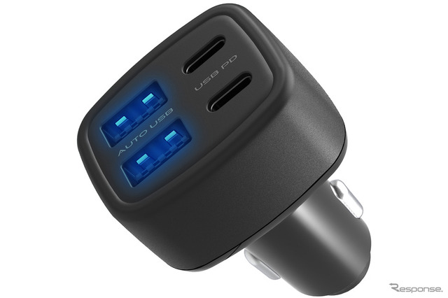 ますはこちら、「Kashimura(カシムラ)」の『DC-72W-USB 4ポート C2A2(DC-079)』(価格:オープン、実勢価格:1780円前後)から紹介しよう。なお今回取り上げるのはすべて、車両のDCソケットに挿して使う充電プラグで、ポートを3口以上装備するハイパワーモデルだ(すべてこの春にリリース)。