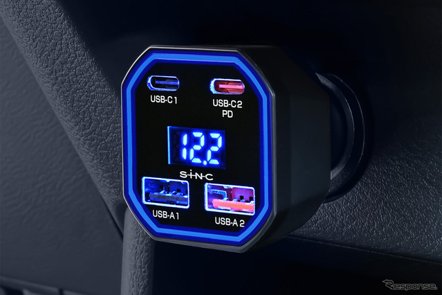 なお当品は、ブルーLEDを装備していることもストロングポイント。インテリアのドレスアップパーツとしても機能する。また電圧計も備え、車両のメインバッテリーの健康状態もモニタリングできる。過電流保護や過電圧保護等の各種安全保護機能回路も搭載済みだ。