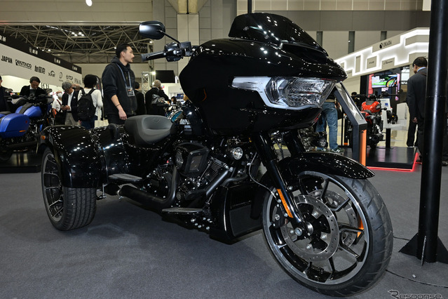 2026年モデルとして発表されたのは、『ストリートグライド 3 リミテッド』『ロードグライド 3』『CVO ストリートグライド 3 リミテッド』の3モデル。そのうち、「ストリートグライド 3 リミテッド」と「ロードグライド 3」を会場に並べた。「過去最大ともいえる大幅な刷新を行った」としており、全く新しいリアサスペンションを備えた新設計のシャシーを採用、ハーレーダビッドソンのトライクを新世代へと切り開く。