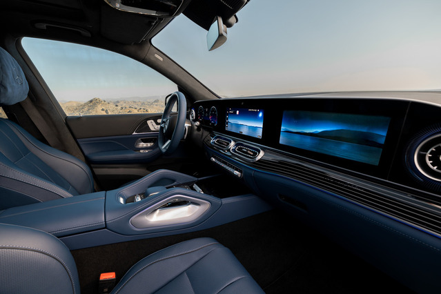 改良新型GLEのインテリアには新しいトリム素材と快適装備が追加された。第1列シート用の外側エアベントはスクエアからオーバル形状に変更され、アンビエントライトとシームレスに統合されている。