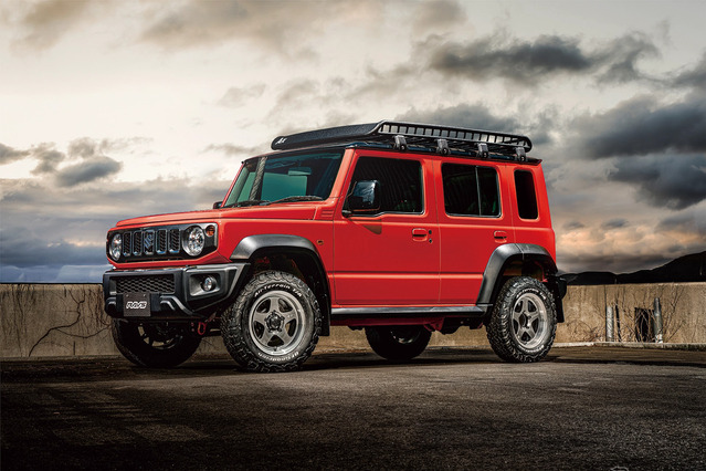 これまでのショートボディのジムニーのようなアクティブにオフロード走行を楽しむという方向性に加えて、ロングボディならではのSUV的な活用方法までを視野に入れた車両でもあり、カスタマイズの方向性もドレスアップ志向が加わってきている。そこでホイールとして注目したいのは“大径モデル”だ。