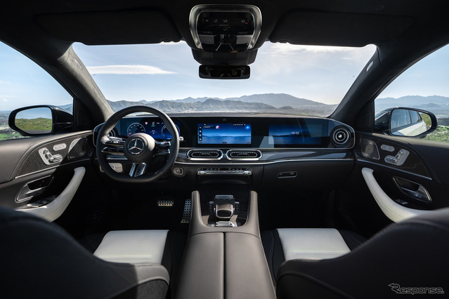 標準装備の「MBUXスーパースクリーン」は、3枚の12.3インチ(31.2cm)ディスプレイを大型ガラス面の下に一体化し、運転席から助手席まで車内全幅にわたって広がる。オプションの3Dドライバーディスプレイはボタン一つで立体的な表示に切り替えられる。ナビゲーションにはグーグルマップの技術とメルセデス・ベンツのユーザーインターフェースを組み合わせたシステムを採用。GLEクーペに初めて搭載される「MBUXオーグメンテッド・リアリティ・ヘッドアップ・ディスプレイ」は、矢印やレーン案内などをフロントガラス越しに路面上に投影する。