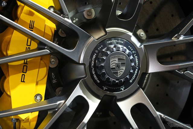 リアには先代より10mmワイドな325/30 ZR 21タイヤを採用。標準装備のポルシェセラミックコンポジットブレーキ(PCCB)システムには新しいブレーキパッドが装備され、リアアクスルのブレーキディスク径は390mmから410mmに拡大、フロントには直径420mmのディスクを採用した。これはポルシェが2ドアモデルに搭載した中で最大のPCCBブレーキシステムとなる。