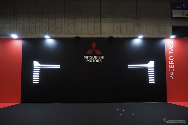 会場でプレスカンファレンスをおこなった岸浦社長は、パジェロの車名は明言しなかったが、「新型クロスカントリーSUV、これは年内に投入する予定だ」と語った。準備は順調に進んでいるという。それがパジェロになるかどうか、という記者からの質問には「今日はその辺は控えたいなと思います」と濁したものの、明確に否定はしなかった。また、三菱ブースの壁には、ヘッドライトのような図形が黒地に白く描かれており、これが新しい“パジェロ顔”になるとみられる。