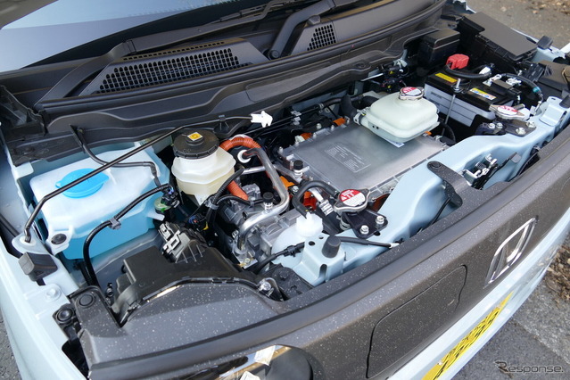 実車はまず、外連味のないスタイルが印象的。ICE(内燃機関)版の『N-ONE』がベースとはいえ、ノーズまわり(グリルやライト、バンパー、フード、左右フェンダー)や、リヤもガラス、ゲート、バンパーなどが専用デザインで起こされている。このことで実は見た目の雰囲気をずいぶん変えることに成功しており、すっかりお馴染みのICEの癒し顔に対して、街中で見かけると、その澄まし顔に「おや!?」と目がいく。