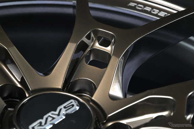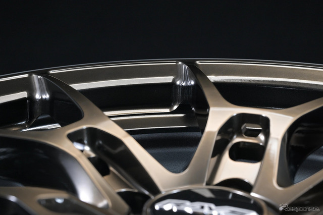 このカラーはかなり手の込んだ処理で仕上げられており、ベースにブラックを施し、その上からブロンズカラーを重ねることで調光輝調として発色させている。色のグラデーションがホイールのエッジ感や滑らかなラウンド形状を引き出してくれるのも特徴だ。