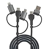 続いては、さらなる利便性を携えたこちら、「SEIWA(セイワ)」の『6way USBケーブル(D656)』(価格:オープン、実勢価格:1580円前後)をピックアップする。当品はUSB-CtoCのケーブルだが、片側にはUSB-Aの変換プラグが付いていて、もう片側にはUSB-A、Lightning、microUSBの変換プラグが付属している。つまり2×3で計6通りの使い方が可能だ。