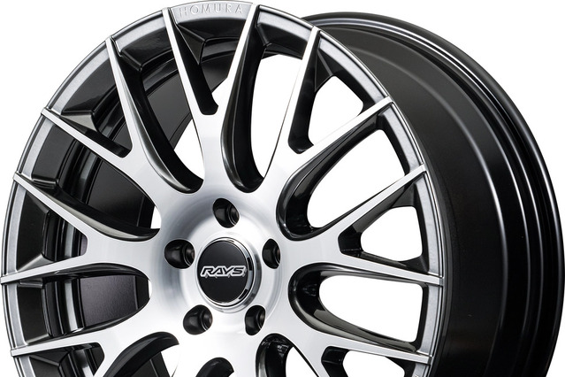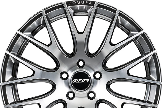 細部の仕上げが上質なのもホムラブランド全般に通じる美点であり、「2×9R」のセンターキャップもそのひとつだ。GENERAL CAPと呼ばれるセンターキャップは、黒のレンズにRAYSロゴを浮かび上がらせる高品質なパーツで、これだけでもホイール全体をワンランク上に見せてくれる。さらにリムフランジには、同社の特許技術であるA.M.T.(アドバンスドマシニングテクノロジー)を用いてHOMURAやRAYSの文字がマシニング加工されている。こうした細部の処理も質感の高さを物語るポイントだ。
