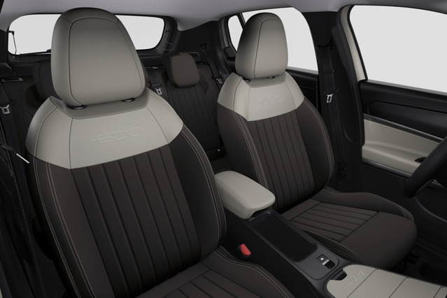 主な特別装備は、グラファイト/アイボリー ツートーン エコレザー シート(フロント)、ホワイトパッケージ(ドアミラーカバー、フロント600エンブレム、リア フィアット エンブレム)だ。