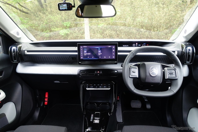 「シトロエンよお前もか」ではないけれど、C3のコックピットはプジョーのiコックピット同様、メーターパネルをステアリングリムの上から見る方式になった。もっともメーターは、ダッシュボードの最上階に、横方向に展開されるデジタルディスプレイを見る形であって、プジョーのようにメーターナセルがあるわけではないから、iコックピットほどの違和感はない。