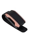 で、当品の最大の特長は、質感が高いこと。:シンセティックレザーをリアルステッチにて仕上げてあり、さらにはカッパーメッキもあしらわれていて高級感が満点。最近のカッパーアクセントが採用されたインテリアに特にマッチする。サンバイザーをキズ付けないようにクリップ部分にもレザーが使われていることも、嬉しいポイントだ。