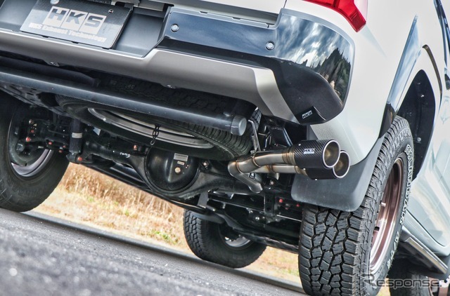 同製品は、右リアタイヤ後方からのサイド出しレイアウトが採用されている。ピックアップトラック本来の使命を持つ荷台の使い勝手を損なわないよう、荷物の積み下ろし時にも、テールパイプが足や荷物に干渉しない実用性を重視した設計となっている。
