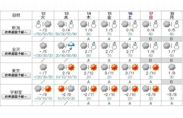 いよいよ今週末に大学入試センター試験が実施される。気象庁の週間天気予報によると、センター試験当日の1月16日と17日の天気は、北日本から西日本の日本海側は曇りや雪、太平洋側は曇り時々晴れの見込み。
