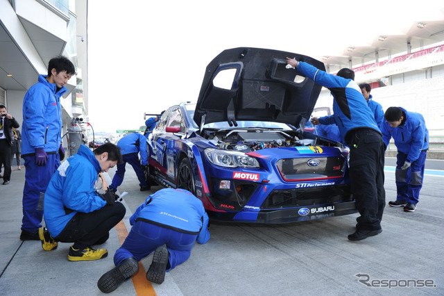 2016年のニュルブルクリンク24時間レースに参戦するスバルSTIチームは22日、富士スピードウェイで今季仕様の参戦マシン『WRX ST』を、メディア・パートナー企業向けにお披露目し、シェイクダウンに臨んだ。