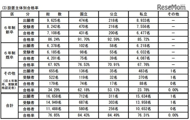 厚生労働省は3月28日、薬剤師国家試験の合格発表を行った。合格率は76.85%で、前年より13.68ポイント増加。新卒の合格率は86.24%だった。大学別の合格率がもっとも高いのは「いわき明星大学」98.67%であった。
