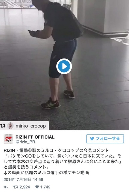 ミルコがRIZINに参戦「ポケモンGOをやってたら日本に着いた」