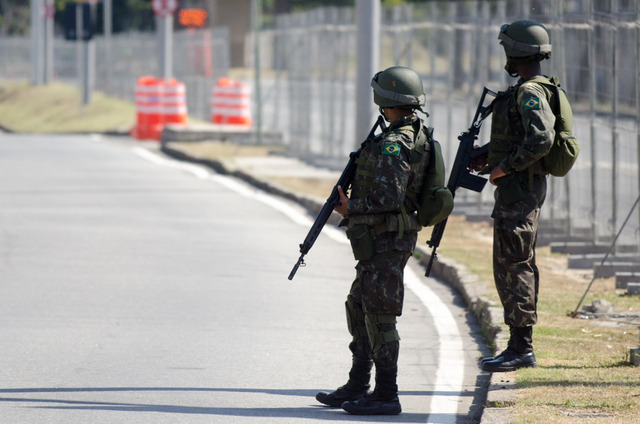 8月5日20時(現地時間)のリオデジャネイロ五輪開会式が迫るマラカナン・スタジアム。その最寄りのマラカナン駅では軍による警備態勢が強化されていた。