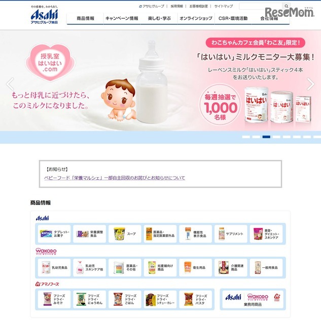 アサヒグループ食品「和光堂」離乳食に樹脂片混入、一部自主回収へ 1枚目の写真・画像
