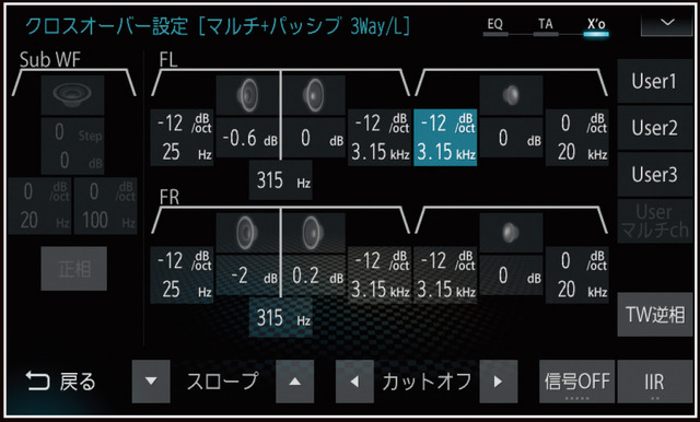 Photo by 三菱電機 『ダイヤトーンサウンドナビ』で“仮想3Wayタイムアライメント”調整を行おうとしているときの画面。