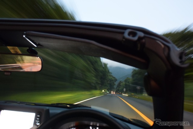 《撮影 井元康一郎》 コペンセロで早朝の箱根新道を走る。