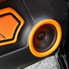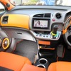 セントな-コンソールの下部にはヘッドユニットを設置するスペースを増設。ここにもオレンジのパネルを用いて統一感を出す。