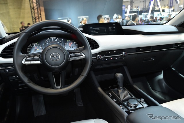 マツダは、1月11日より幕張メッセで開催されている東京オートサロン2019にて、新型『マツダ3』を日本初公開した。日本市場で『アクセラ』に相当するモデルの海外市場での車名がマツダ3で、展示車両は北米仕様。